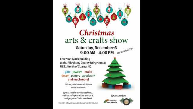 9+ hour, 44+ min ago (126+ words) The show will be held in the Emerson Black Building at the Alleghany County Fairgrounds in Sparta The community is invited to the 18th annual Christmas Arts and Crafts Show in Sparta Saturday, December 6 from 9:00am- 4:00pm. The annual Christmas show is hosted by the Alleghany Arts and Crafts non profit that is celebrating 20 years of fostering creativity and supporting artists. The show will be held in the Emerson Black Building at the Alleghany County Fairgrounds, just north of Sparta. Event Coordinator, Liz Redding said it's a juried show and all items will be handmade by local artists. There will be holiday music to enjoy, fresh wreaths and local food. Click on the video player above for the full segment with Redding....