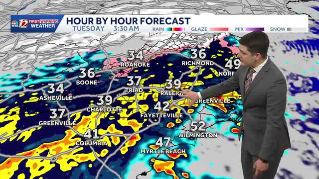 A few spotty showers and chilly 40s are on the way in the Piedmont, freezing rain risk in Mountains